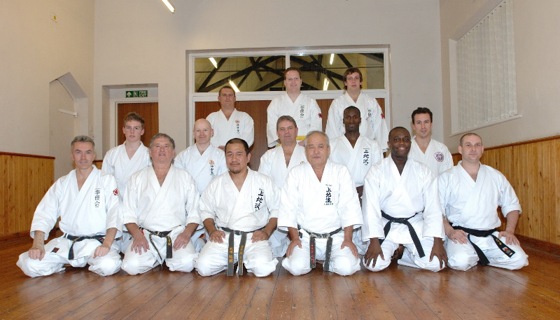 Okinawan Karate Master visits Hedge End Master Ryuji Hayashi (7th Dan) and Sensei Hiroshi Tokaida from Amami Island visited our dojo in Hedge End on Monday 29th October to take the evening training session. Both instructors are in England on an instructional visit organised by the Sei-Bu-Kan Karate Association (www.sei-bu-kan.com). We were also delighted to welcome for the first time Sensei Derek Charlton and his students, and Sensei Kuda Adams and his student who travelled up to train with Master Hayashi. Master Hayashi is third from the right on the front row of the photograph and Sensei Tokaida is fourth from the right. A full article, and further photographs, will appear in the 'ARTICLES' section of this website shortly.