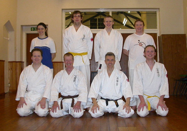 Our first visitor drops in to train with us We would all like to thank Adam Wray 3rd Dan for dropping in to train with us on Thursday 10th November 2006. Adam, who trains regularly in Seven Oaks, Kent, just happened to be coming down our way on business so having seen our website in the past he brought his kit along with him. He gave us a call just a few hours before training so see if he could join in. Naturally we were delighted to have him with us. During his visit Adam joined in the class and assisted with the evenings instruction. His visit was particularly appreciated as it meant he would not get home until well after midnight. We offer an equally warm welcome to all Uechi-Ryu instructors and students who would like to visit us. Adam Wray (in blue) with the Hedge End club members